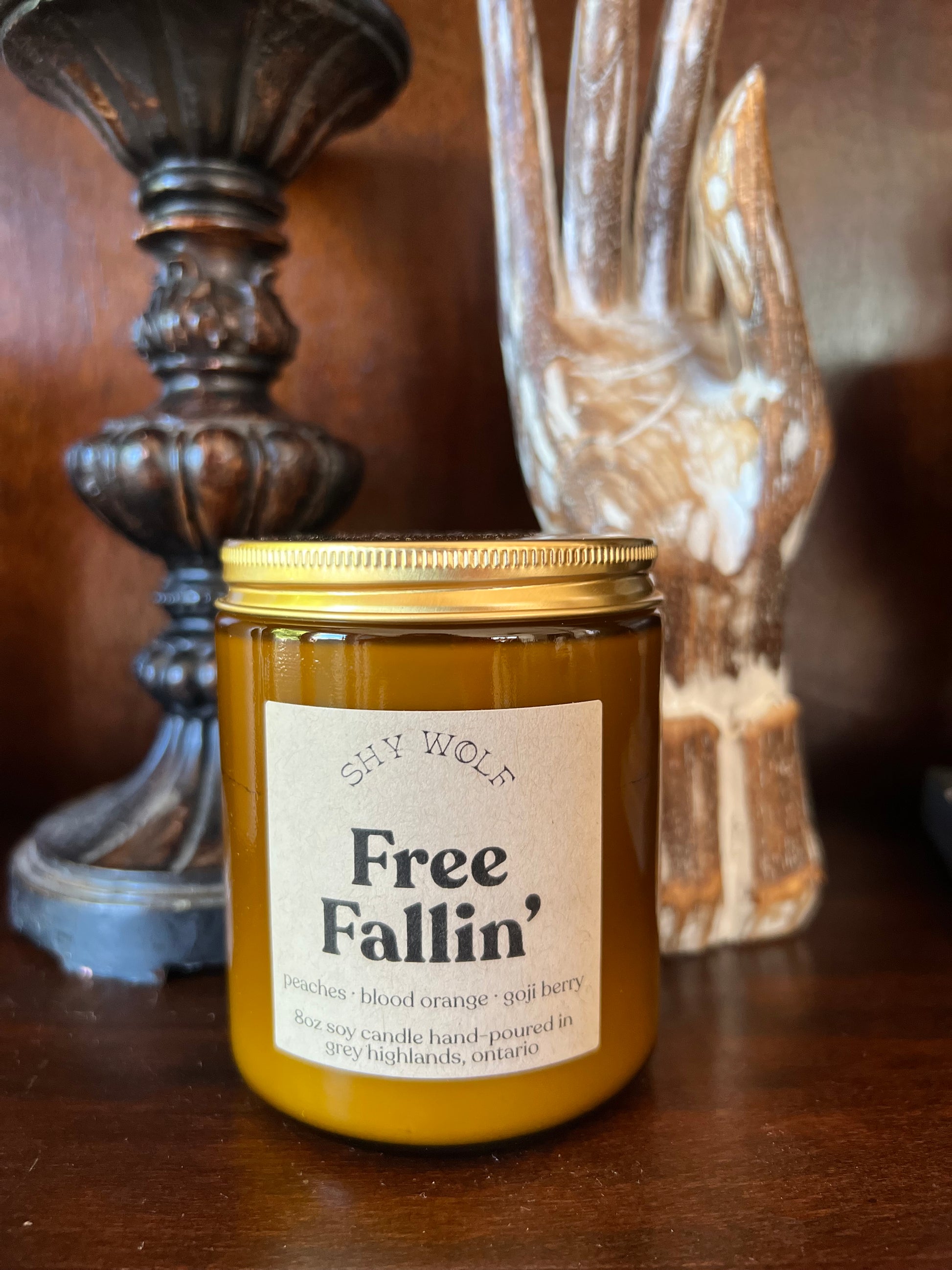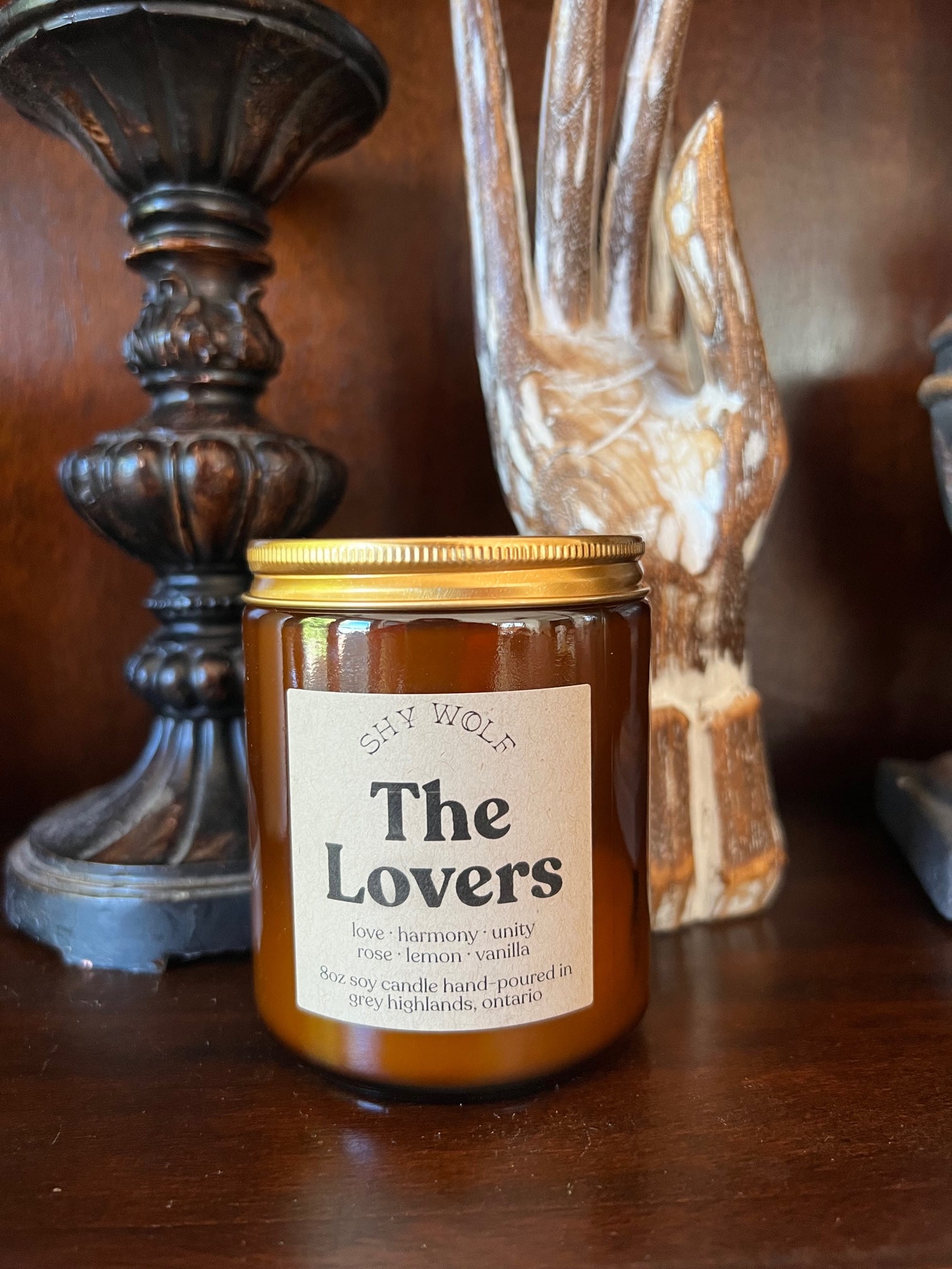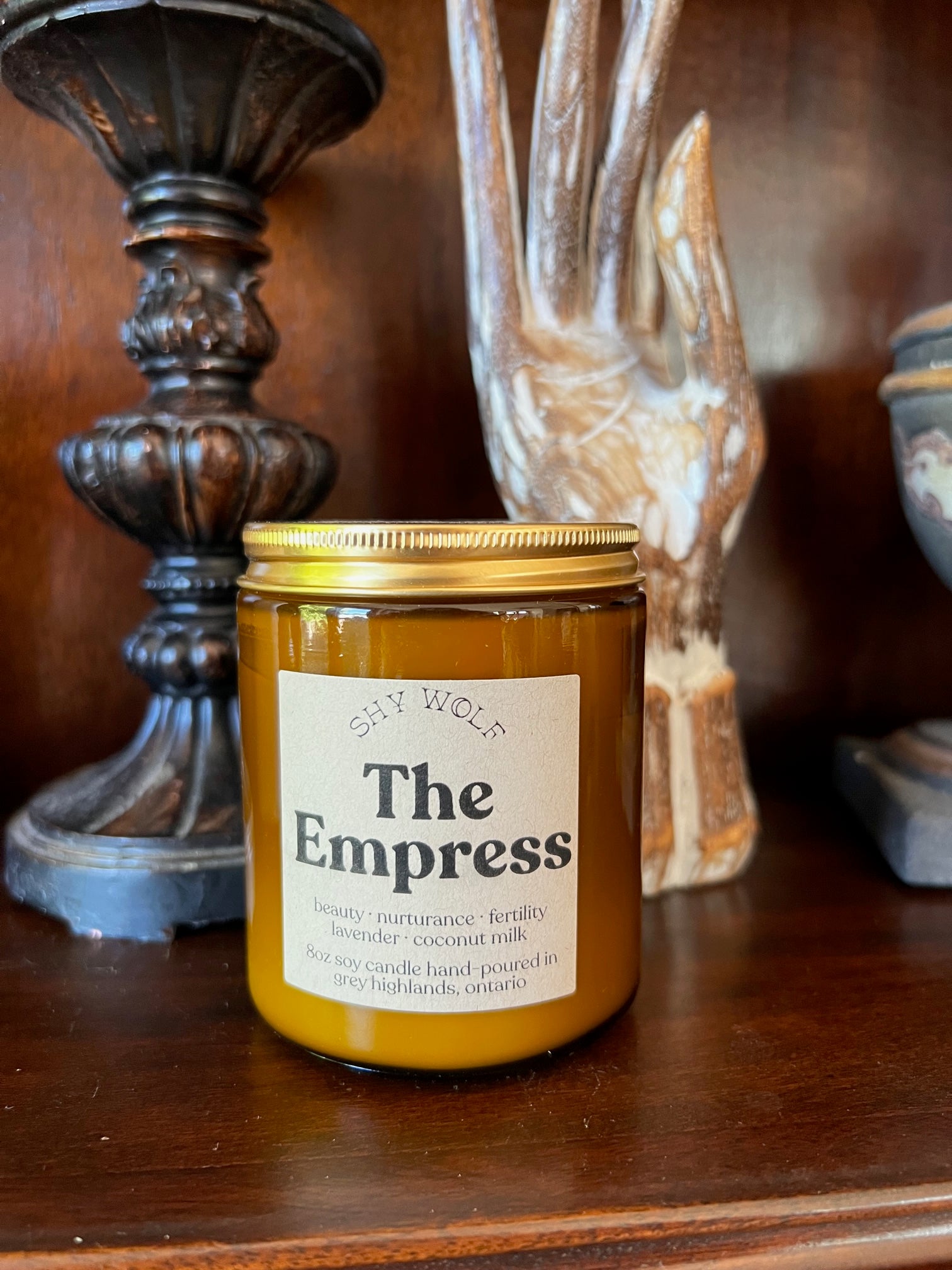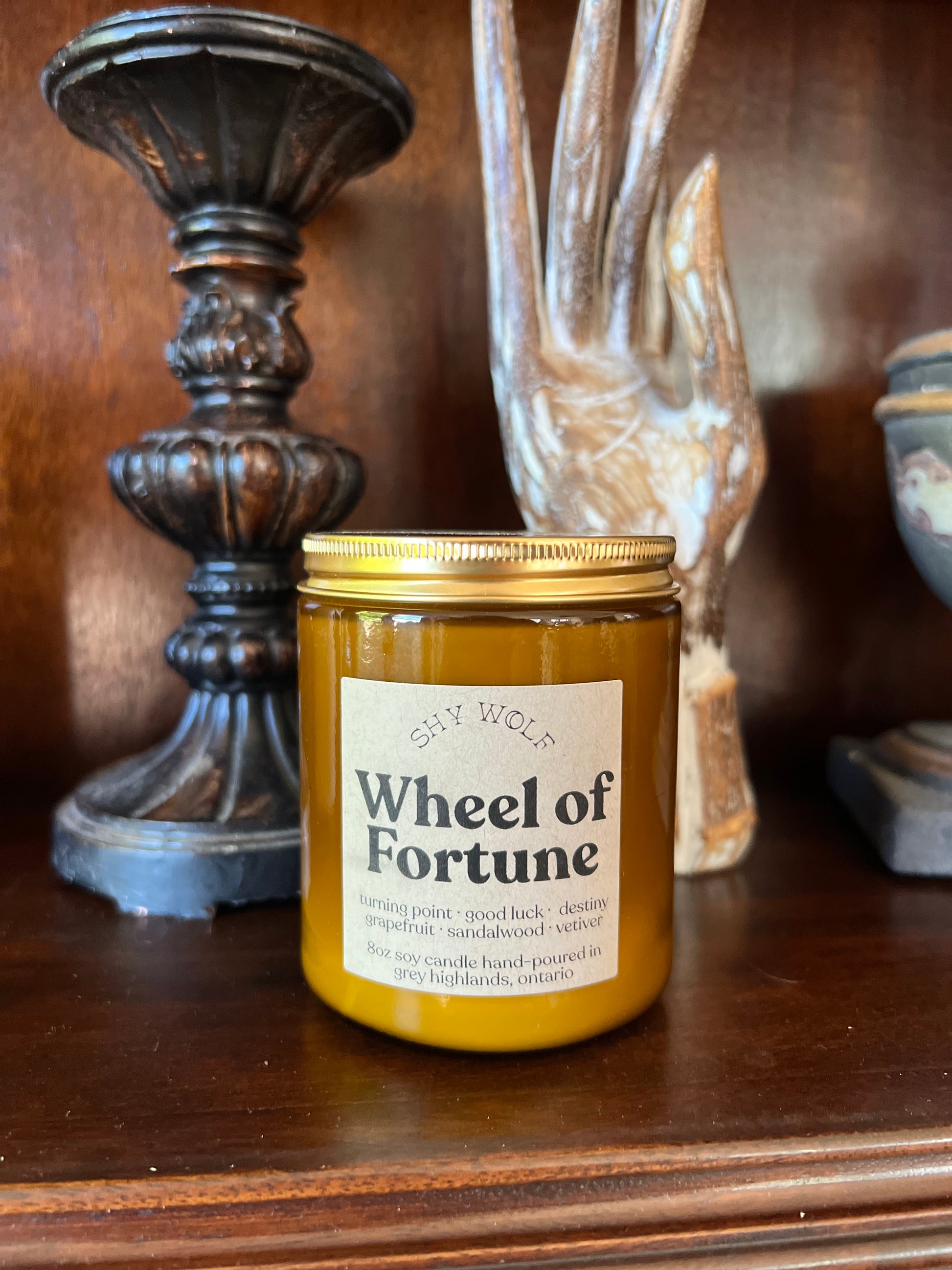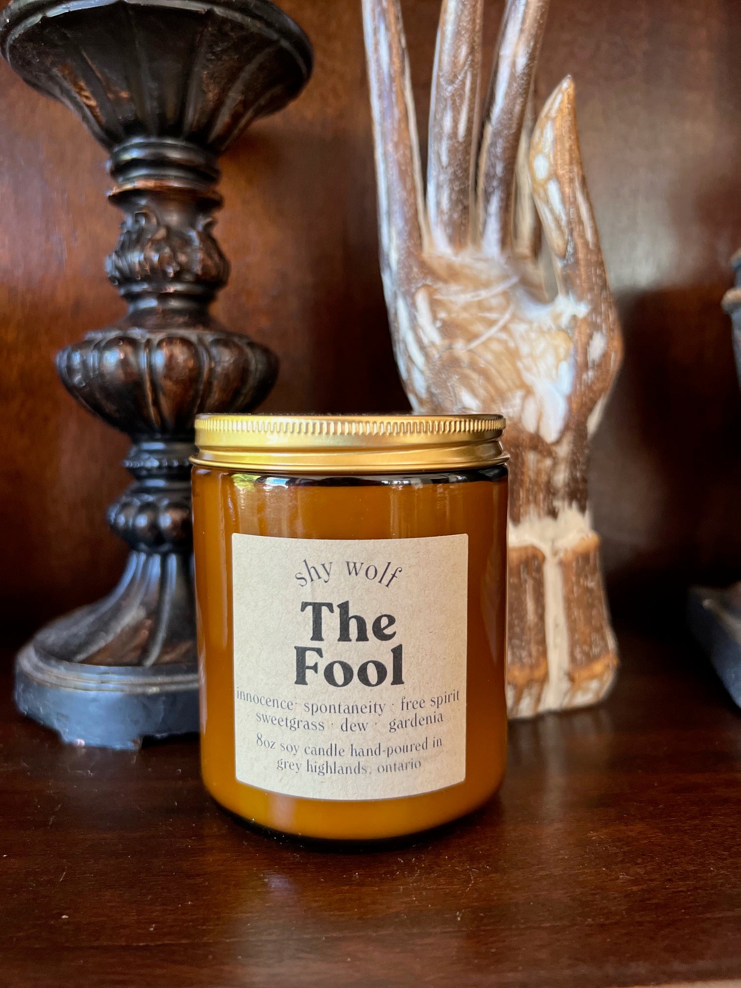 Hand poured in Grey Highlands, Ontario, sustainably crafted with soy wax, cotton wicks, and a custom blend of natural scents inspired by classic rock and the tarot. Phthalate free, 8oz